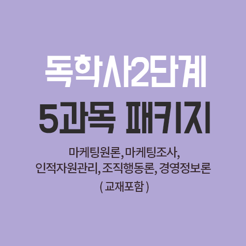 2단계 5과목 패키지 : 마케팅원론, 마케팅조사, 조직행동론, 인적자원관리, 경영정보론 (다른 과목으로 변경 가능합니다)